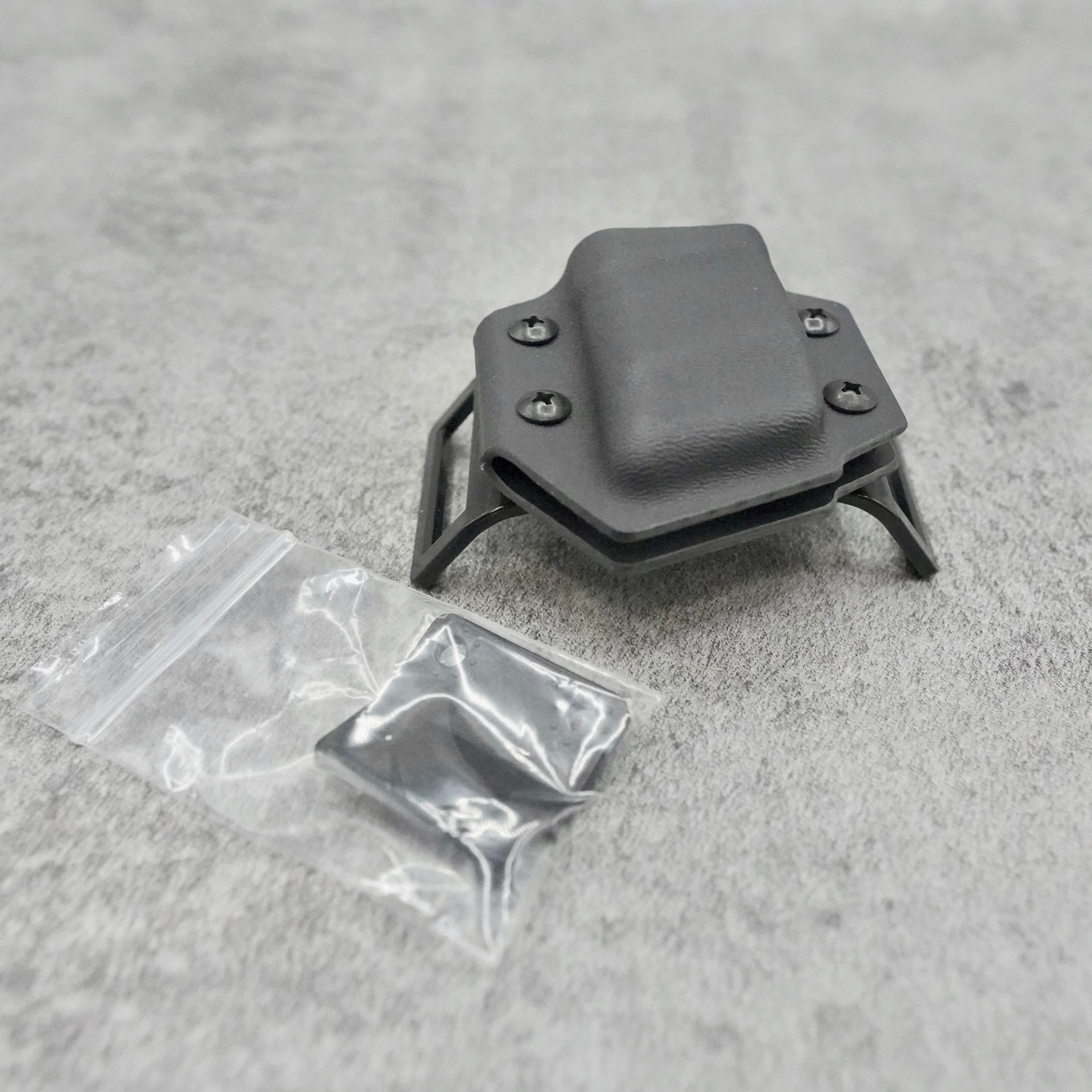T.REX ARMSのアイアンサイドピストルマグキャリアはサポートハンド側にスペアマガジンを携帯することができます。アイアンサイドホルスターと同じように人間工学に基づいた設計となっています。本製品は1.5インチのベルトループに対応しており、マガジンの保持力はリテンションスクリュー(ネジによる)で行います。キャリアコネクターが付属しており、他のアイアンサイドキャリアと連結することができるので、ニーズに応じた理想的な構成を組むことができます。